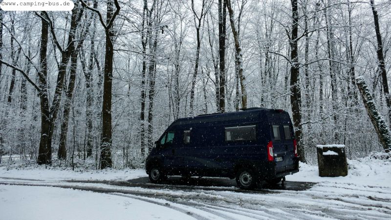 02./03.01. Ganderkesee - Nettetal - Zuydcote / Frankreich 602 km Um Schnee und tiefen Temperaturen einigermaßen zu entgehen, fassen wir zwei geplante Etappen zu einer zusammen. Wir übernachten nicht wie ursprünglich vorgesehen in Nettetal kurz vor der holländischen Grenze sondern machen auf einem verschneiten Waldparkplatz nur unsere Mittagspause im schönen Winterwald.