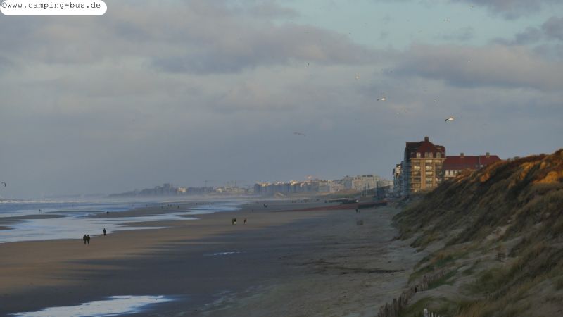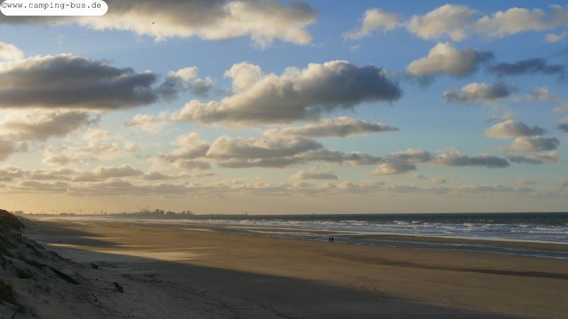 Der Blick von Zuydcote auf die belgische "Betonküste" am Horizont