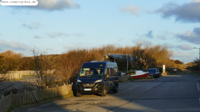 Parkplatz mit Meeresrauschen hinter den Dünen