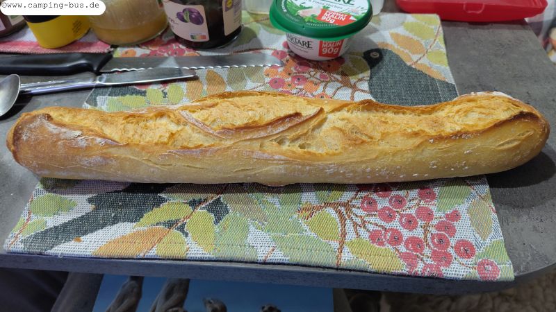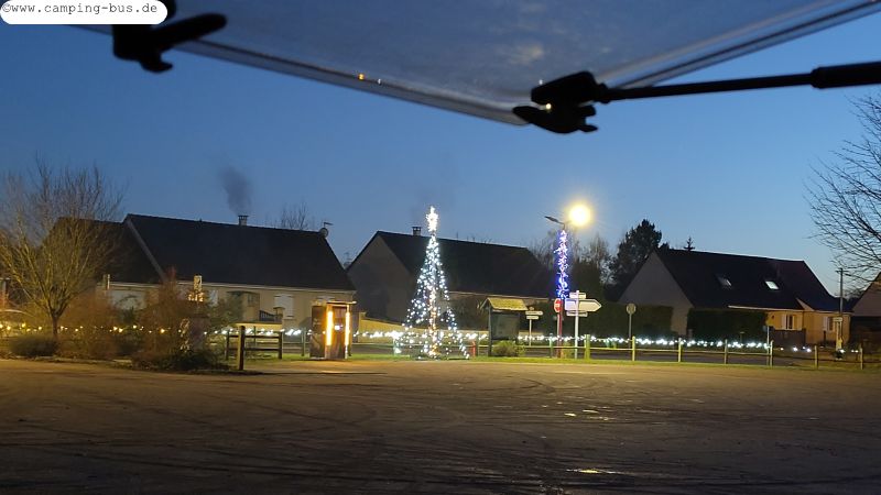 Einen Stellplatz mit blinkendem Weihnachtsbaum hatten wir noch nie und einen Baguette-Automaten auf dem Platz auch nicht.