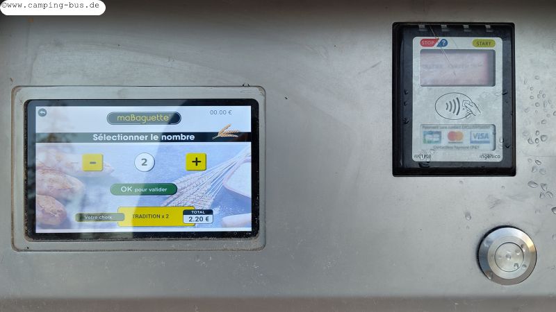 Die Bedienung schafft man auch ohne Französischkenntnisse - Stückzahl wählen, Zahlungsart wählen, bezahlen und das knackige Baguette plumpst ins Ausgabefach.