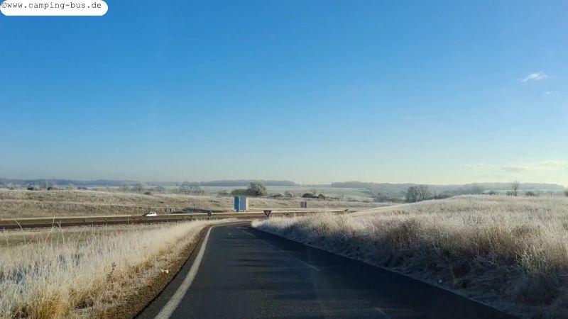04./05.01. Briosne-lès-Sables - Asques / Dordogne 427 kmBei winterlichen 6 Grad unter Null starten wir Sonntagmorgen in Briosne-lès-Sables und fahren zunächst mautpflichtig durch eine wunderschöne Rauhreif-Landschaft über A 28 und A 10 von Le Mans über Tours bis Poitier.