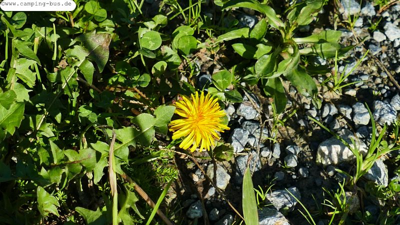 Wir stehen auf einem Platz mit frischem Gras, blühendem Klee, Gänseblümchen und Löwenzahn - was für ein Kontrast zu den Winterbildern des Tages aus Husum!