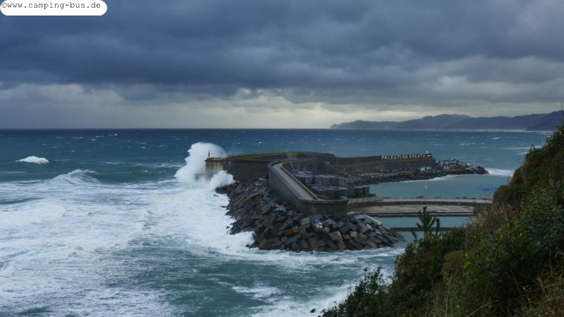 07. bis 10.01. Mutriku - Ondarroa - Lekeitio 24 kmNach nur viereinhalb Kilometern Fahrt durchs baskische Hügelland erreichen wir am Mittwoch unser nächstes Ziel, den Parkplatz am Strand Saturraran bei Ondarroa. Die Höhenbarrieren am Strandparkplatz wurden abgebaut, wir müssen also nicht auf den wohl für Wohnmobile vorgesehenen (nicht ausgeschilderten) Parkplätzen davor parken.