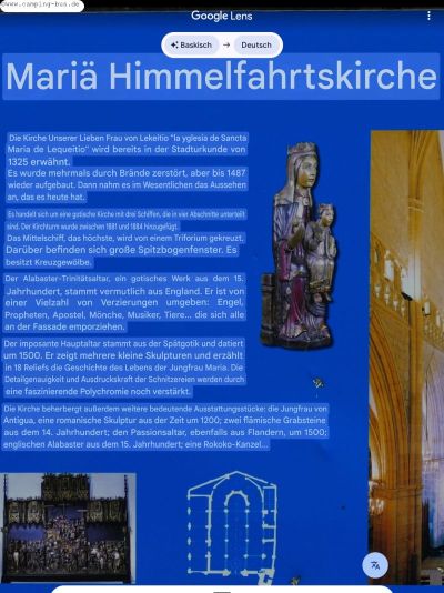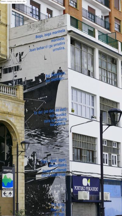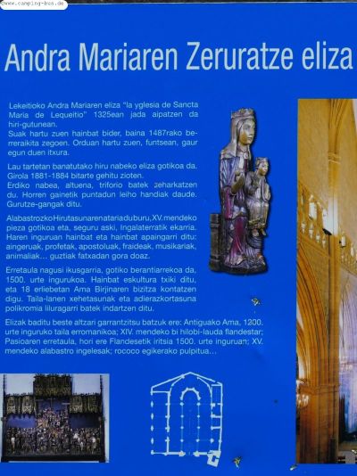Ein Beispiel für die "exotische" baskische Sprache zeigt schon das Schild auf dem Parkplatz, ein weiteres die Information über die Mariä Himmelfahrtskirche am Hafen von Lekeitio.