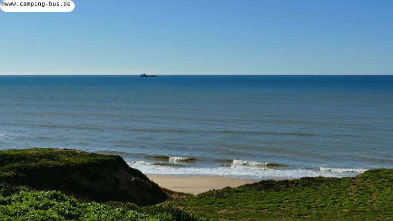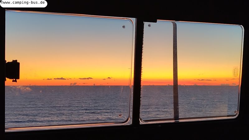 Mit Blick auf Strand, Meer und Schiffe gehen wir zurück zu unserem Parkplatz und warten auf den Sonnenuntergang, den wir diesmal aus unserem Wohnzimmer beobachten können ohne einen Schritt nach draußen machen zu müssen.