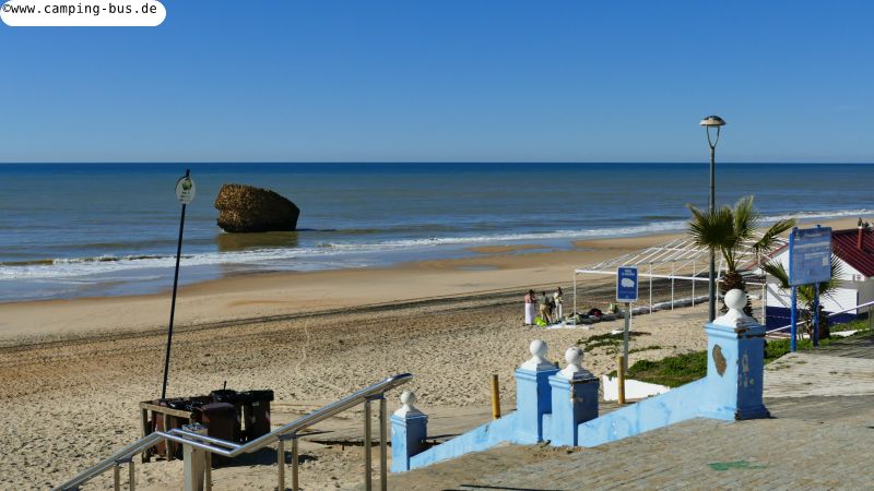 Ein toller Platz mit einem wesentlichen Schönheitsfehler: Im ansonsten verlassenen Urlaubsort Isla Canela hat ausgerechnet das Restaurant neben dem Parkplatz geöffnet! Das lässt vor Mitternacht keine Nachtruhe erwarten.