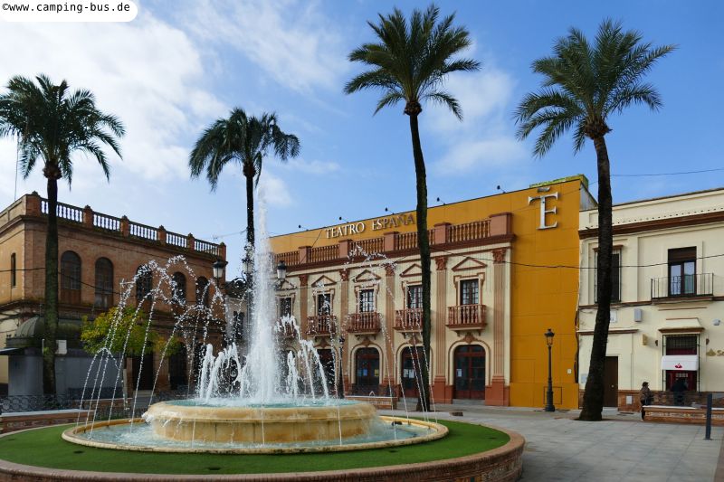 22. bis 25.01. Matalascañas - La Palma del Condado 65 kmNach einer Woche an der Küste fahren wir Donnerstag ins Hinterland auf den Stellplatz der schönen andalusischen Kleinstadt La Palma del Condado. Auf dem Stellplatz stehen wir fast allein, die meisten anderen Wohnmobile verteilen sich auf weiteren Flächen in der Umgebung.