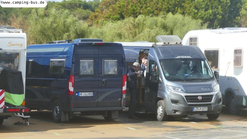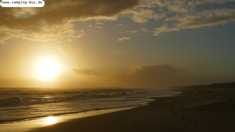 Unser Platz mit freier Sicht auf Strand und Meer ist ideal. Genau hier hatten wir auch beim ersten Besuch vor einer Woche gestanden.