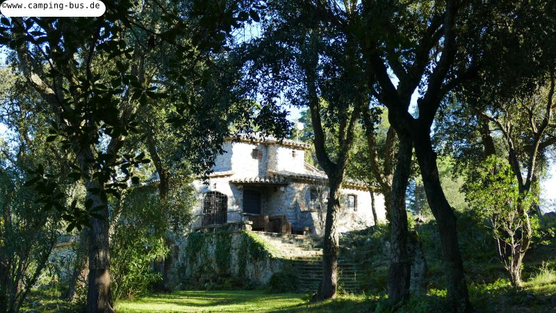 Zwischen den Kork- und Steineichen gibt es vereinzelt gepflügte Ackerflächen. Was etwas ungewöhnlich wirkt war hier im Gavarres-Gebirge über Jahrhunderte der Normalzustand. Zig Höfe gab es hier weiträumig verteilt und dazwischen lag der Sitz der Pfarrgemeinde Sant Cebria dels Alls mit Kirche und Pfarrhaus.