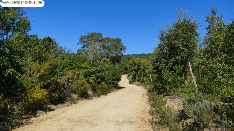 Am Donnerstag wandern wir durch die grüne Landschaft mit blühenden Pflanzen und sich sonnenden Eidechsen. Neben Korkeichen blühen riesige Heidesträucher und Wildkirschen.