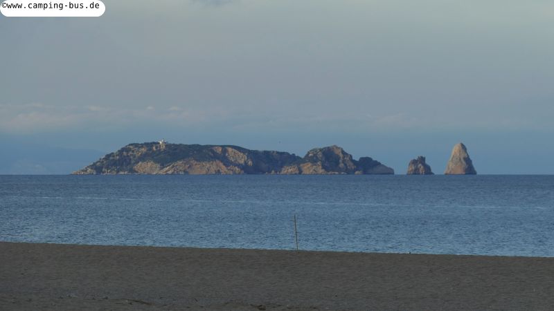 Parkplatz und Strand bieten freie Sicht auf die Illes Medes und L`Estartit.