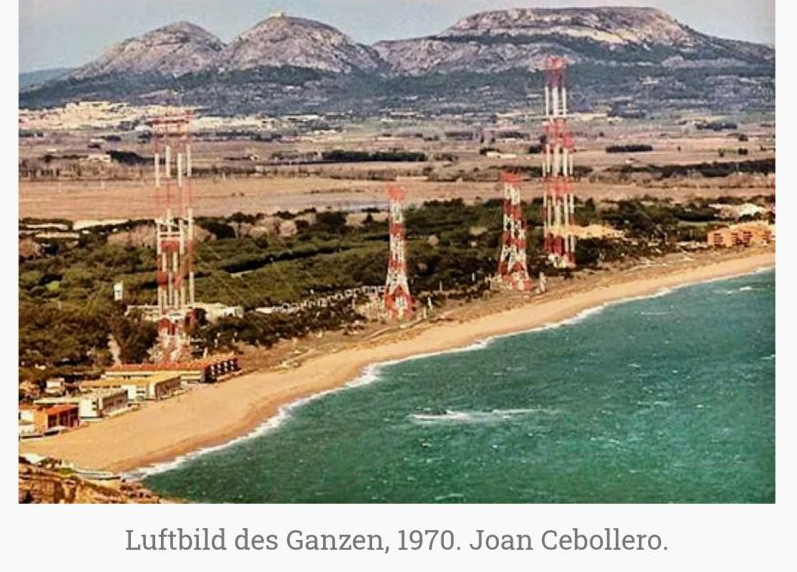 Wenn es sie noch gäbe, müsste man sie auf unserem Bild aus Begur ganz links am Rand erkennen. Aber sie wurden 2006 gesprengt. Hier ein Video auf YouTube vom Gebäudekomplex, der Antennenanlage und deren Sprengung.