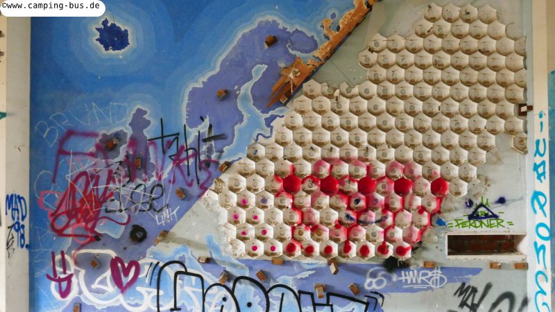 Die ersten Fotos zeigen Motive im Zusammenhang mit dem Radiosender, beginnend mit einem Antennenfundament. Leider gibt es nur noch wenige Reste der technischen Ausstattung. Dann folgt die für Lost Places typische Graffiti und zum Schluss einige "Naturaufnahmen" vom Gelände.