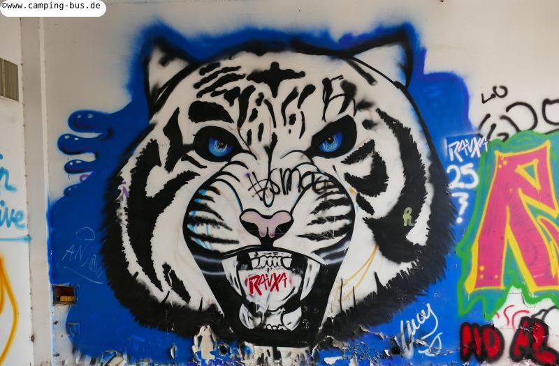 Die ehemalige Hauptzufahrt zu dem weitläufigen Gebäudekomplex ist undurchdringlich. Aber wir bekommen einen Tipp, wo man auf das Gelände des Lost Places gelangt.