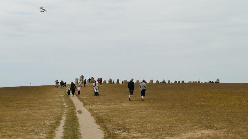 Von Ystad fahren wir weiter nach Käseberga zur Schiffs-Steinsetzung Ales Stenar. Hier wundern wir uns zunächst auf dem Wohnmobil-Parkplatz über die mathematischen Fähigkeiten der Einwohner: Bei einem Kurs von 1:10,2 ergibt sich bei einer Stellplatzgebühr von 120 Schwedischen Kronen ein Preis von 15 Euro! Da wir hier eh nicht übernachten wollen und für den Notfall einige Kronen in bar dabei haben, ist es für uns unbedeutend.