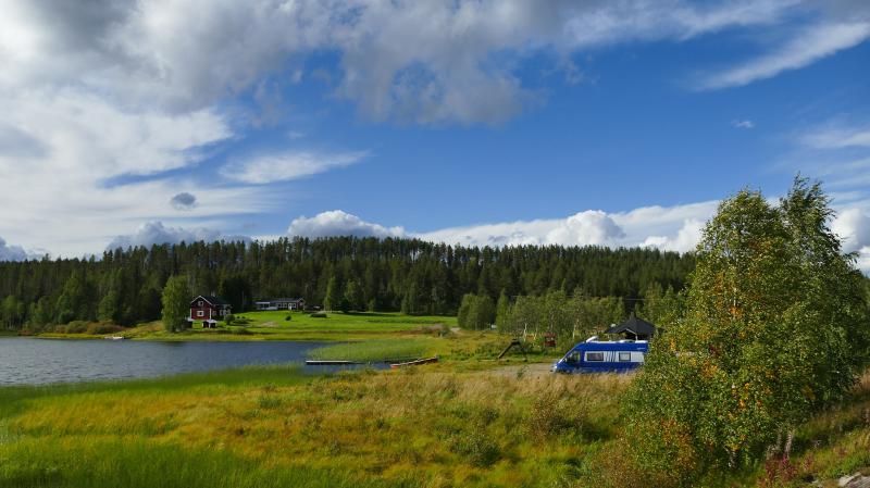 Nach dem Zivilisationsstress in Rovaniemi suchen wir uns Freitagnachmittag wieder einen schönen Platz am See. Auf halber Strecke zwischen Rovaniemi und Pello an der schwedischen Grenze werden wir fündig. Zunächst sind wir allein, Samstagnachmittag gibt es "Verstärkung" durch zwei finnische Wohnmobile, etwa fünfzig Meter von uns entfernt.