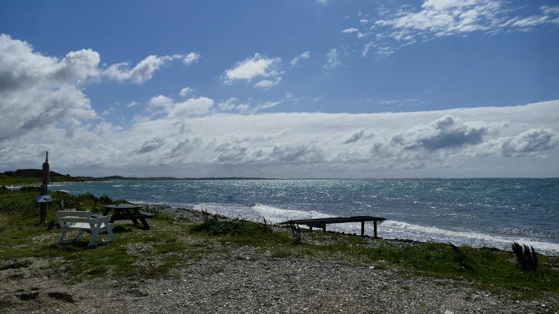 30.07. bis 01.08. Camping Lillebælt - Kerteminde / Fünen 214 kmNach vier Tagen auf dem Lillebælt Camping ziehen wir eine Insel weiter von Alsen nach Fünen. Hier rumpeln wir an der Ostküste durch einen schmalen felsigen Weg zu einem Platz mit unverbaubarer Fernsicht auf den Großen Belt. Das Wetter ist wechselnd bewölkt mit heiteren Abschnitten und einzelnen Schauern. Entsprechend abwechslungsreich sehen auch die Ausblicke zum Himmel und in die Umgebung aus.