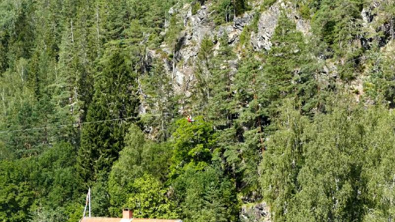 Abenteuerlustig? An der Brekke-Schleuse am Haldenkanal gibt es gleich drei Adrenalin-Pusher! Eine sehr wackelige 125 m lange Hängebrücke führt in 15 m Höhe über den Kanal. Danach kam man in den Felsen hochklettern. Und zurück zum Ausgangspunkt kommt man über eine 250 m lange Seilrutsche (Zipline).