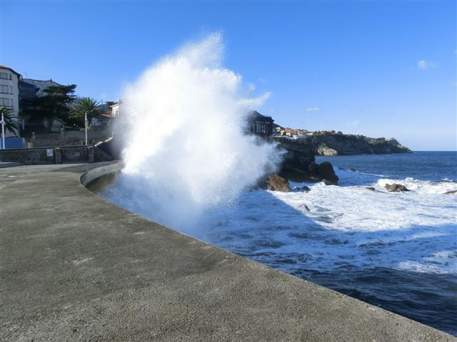 ... sorgt die Brandung an der Schutzmauer des Hafens für ansehnliche Gischtfontainen.