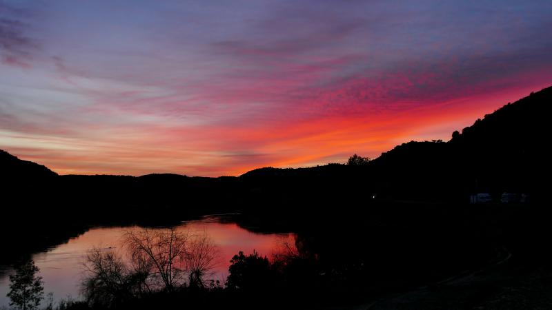 Wir stören keinen, uns stört keiner - auf solche Plätze mit einigen Kilometern Anfahrt über Schotter und Unebenheiten fahren normalerweise keinen nächtlichen Besucher. Nach einer lautlosen Nacht erfreuen wir uns gut ausgeschlafen an den intensiven Farben kurz nach Aufgang der Sonne.