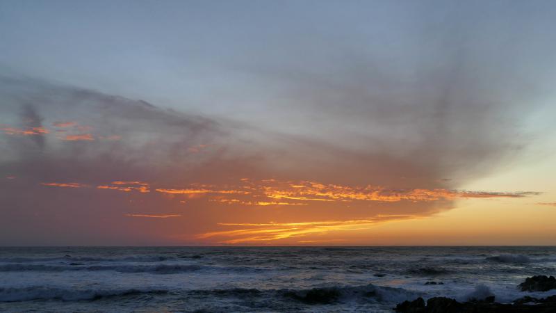 Freitag während wir frühstücken werden die Wellen von der aufgehenden Sonne angestrahlt und im weiteren Lauf des Tages unterhalten sie uns optisch und akustisch.