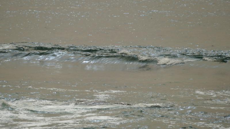 Wir können nochmal die spritzende Gischt und die Angler auf den Felsen beobachten.