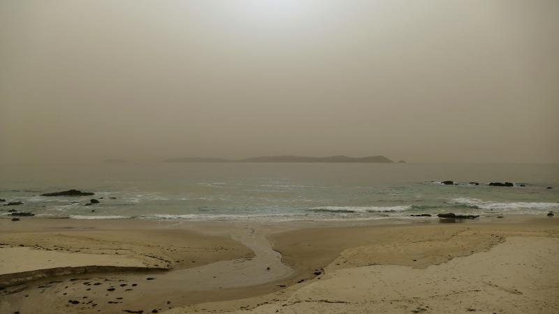Vom Wohnmobilstellplatz Area Sanxenxo an der Westküste Galiciens über Rinlo und Fitu nach FrankreichTeil 22 von 23: 99 Tage Überwintern mit dem Wohnmobil in Spanien und Portugal 2021/ 2022 Vier Tage bleiben wir auf dem wunderschön am Strand gelegenen Wohnmobil-Stellplatz Area Sanxenxo an der galicischen Westküste. Wir sind bereits zum siebten Mal hier! Es gibt keinen Stellplatz, auf dem wir so oft waren und auf dem es uns so gut gefällt. Von hier beginnt unsere Rückreise in die Heimat. Die beiden letzten Stationen in Spanien sind Rinlo an der Nordküste und der Aussichtsparkplatz Fitu mit Blick auf die Picos de Europa und die Küste zwischen Llastres und Ribadesella in Asturien. Hier die Karte unserer Rückreise durch Nordspanien, Frankreich und Luxemburg nach Lippe 14. bis 18.03. Wohnmobil-Stellplatz Area Sanxenxo am Praia PragueiraWas schwimmt da auf dem Wasser - Quecksilber? Nein! Beim Blick gegen die kaum sichtbare Sonne schimmert das Meer in Farben, die wir noch nie gesehen haben. Entgegen der Wetterprognose haben wir am Dienstag keinen strahlend blauen Himmel sondern einen sandgrauen. Der Saharastaub hat sich von Andalusien bis in den Nordwesten der iberischen Halbinsel ausgebreitet und sorgt für dieses mystische Licht. Hier ein Artikel zu dem Thema "Staub aus der Sahara".