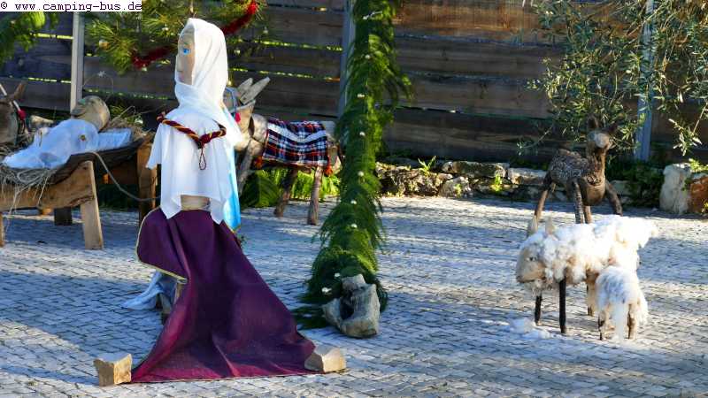 Donnerstagmorgen verlassen wir unseren Aussichtsberg. Wir kommen durch das Dorf Poios und sehen schöne Krippenfiguren an der Durchgangsstraße.