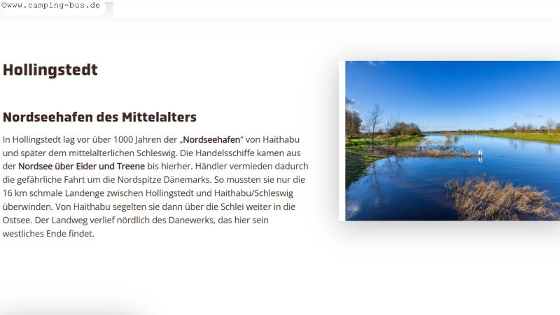 Auf der anderen Seite der Treene in Hollingstedt lag auch mal ein Nordseehafen des Mittelalters! Kaum zu glauben aus heutiger Sicht, aber auf diesem kleinen Fluss verlief eine wichtige Handelsroute zwischen Nordsee und Ostsee. Damals gab es die Sperrwerke an der Eider und in Friedrichstadt noch nicht. Der Gezeitenwechsel reichte auf der Treene bis Hollingstedt und auf der Eider bis Rendsburg. Folglich war die flache Landschaft soweit im Landesinneren auch bei Sturmfluten gefährdet.