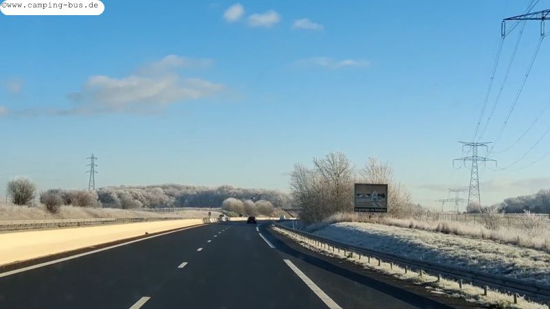 03./04.01. Zuydcote - Briosne-lès-Sables bei Le Mans 461 kmZwei Premieren auf dem Wohnmobil-Stellplatz Briosne-lès-Sables bei Le Mans! Bei überwiegend wolkenlosem Himmel und einem ca. 20minütigen Schneeschauer kurz vorm Ziel fahren wir am Samstag von der französischen Kanalküste zum Stellplatz in Briosne-lès-Sables bei Le Mans.
