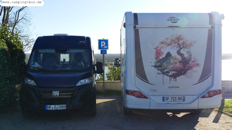 Ab Poitier geht es bei diesigem Wetter mautfrei über die N 10. In unserem Zielort Asques scheint dann wieder die Sonne. Es gibt einen winzigen Stellplatz mit einer phantastischen Aussicht für zwei Wohnmobile.