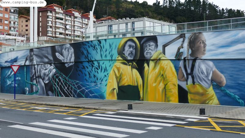 07. bis 10.01. Mutriku - Ondarroa - Lekeitio 24 kmNach nur viereinhalb Kilometern Fahrt durchs baskische Hügelland erreichen wir am Mittwoch unser nächstes Ziel, den Parkplatz am Strand Saturraran bei Ondarroa. Die Höhenbarrieren am Strandparkplatz wurden abgebaut, wir müssen also nicht auf den wohl für Wohnmobile vorgesehenen (nicht ausgeschilderten) Parkplätzen davor parken.