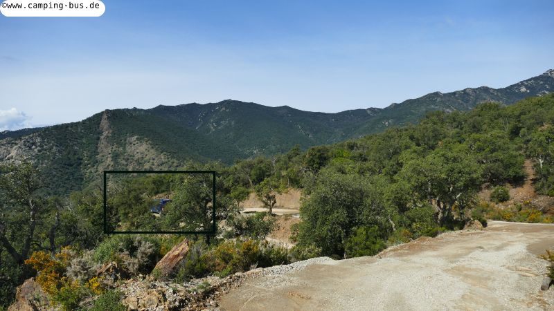 Nördlich von Cantallops haben wir einen Platz mit Aussicht als Ziel, der leider durch Baumaschinen blockiert ist. Nach einigen hundert Metern bergaufwärts finden wir einen kleinen Platz am Wegesrand mit Blick in die Berge, in die Ebene bis zum Mittelmeer und zu den Hochhäusern von Empuriabrava.