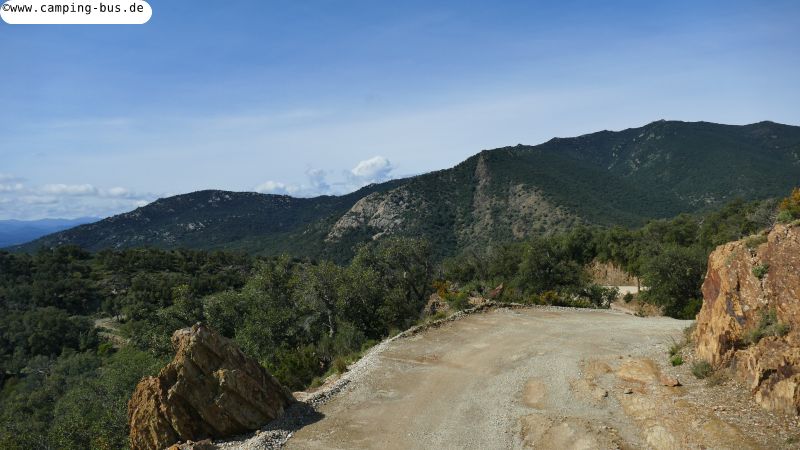 Die Straße führt weiter bis zum Castell de Requesens. Während unserer Mittagspause sind wir überrascht von relativ viel Verkehr. Bei einer Erkundung zu Fuß stelle ich fest, dass der Weg eher schmaler wird und soweit ich gehe, gibt es keine Ausweichstellen. So bleiben wir bis zum nächsten Morgen auf unserem Platz mit Aussicht und freuen uns über tausende Lichter unter uns in der Dunkelheit ( nicht fotografiert ) .