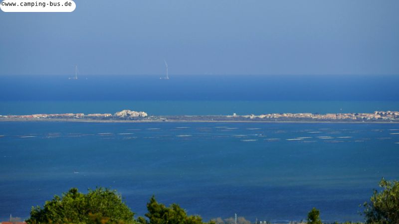 Mit dem Wohnmobil vom Leucate-See durch die Petite Camargue in die Ardeche-SchluchtTeil 16 von 17: Überwintern mit dem Wohnmobil in Spanien und Portugal im Winter 2025/2026 Nutria und Bisamratte, blühende Orchideen, Euphorbien, Iris, Perlhyazinthen und Blumenbinsen, das Mittelmeer und der See von Leucate, die Petite Camaergue sowie die Ardeche-Schlucht - dieser Teil unserer Reise bietet ganz besonders viel Fauna, Flora und Landschaft. 20./21.03. Opoul-Perillos / Salvaterra - Fitou 14 kmWir kommen dem Mittelmeer nochmal etwas näher mit Blick auf den See von Leucate und die verschiedenen Ortsteile zwischen See und Meer.
