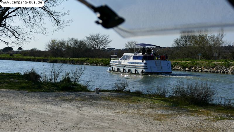 21. bis 23.03. Fitou - Rhône-Sète-Kanal / Petite Camargue187 kmNutria und Bisamratte - neue Region, andere TiereWeiter geht unsere Reise in die Petite Camargue. Bei Gallician sehen wir Samstag ein Passagierschiff auf dem Rhône-Sète-Kanal. Damit hatten wir jetzt im März noch nicht gerechnet.