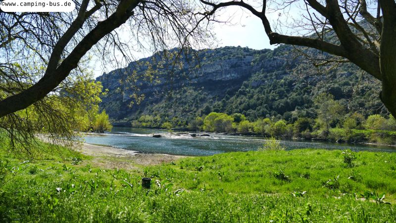 23./24.03. Rhône-Sète-Kanal - Vagnas 99 kmMontagmorgen verlassen wir endgültig die Nähe des Mittelmeeres. Durch die frühlingsgrüne Landschaft fahren wir in die Nähe der Ardeche und verbringen den Tag auf einem schönen Naturplatz mit Blick auf Vagnas mit den Cevennen im Hintergrund und Labastide de Virac mit dem Chateau de Rour.