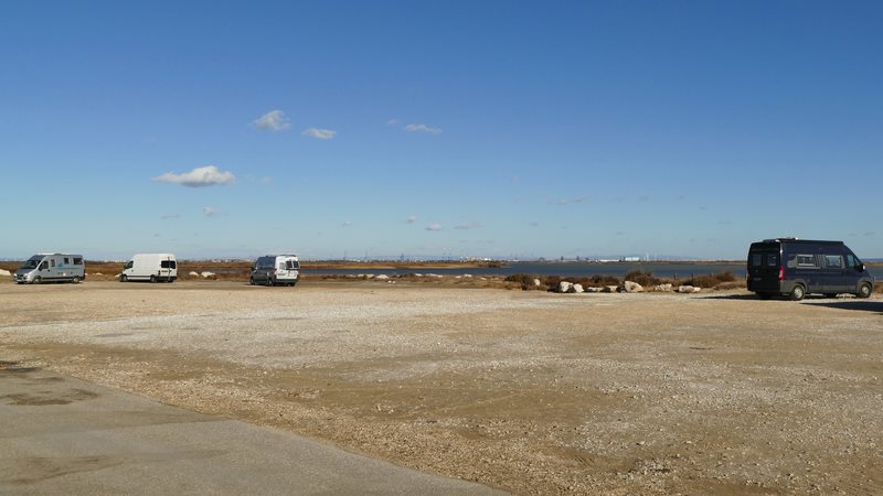 Zur Übernachtung fahren wir letztlich auf einen der beiden kostenlosen Stellplätze in Salin-de-Giraud, nicht schön, aber ruhig und ziemlich leer.