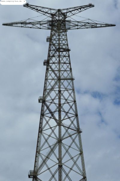 Als nächstes besuchen wir ein ungewöhnliches Denkmal der Elektrizitätsgeschichte, einen Strommasten :-) Zur Anbindung des Stromnetzes Siziliens an das des italienischen Festlandes wurden 1955 zwei je 224 m hohe Stahlfachwerktürme für eine Hochspannungsleitung errichtet. 1993 wurde die Leitung demontiert, nachdem man sie durch ein Seekabel ersetzt hatte. Die Masten blieben aber erhalten.