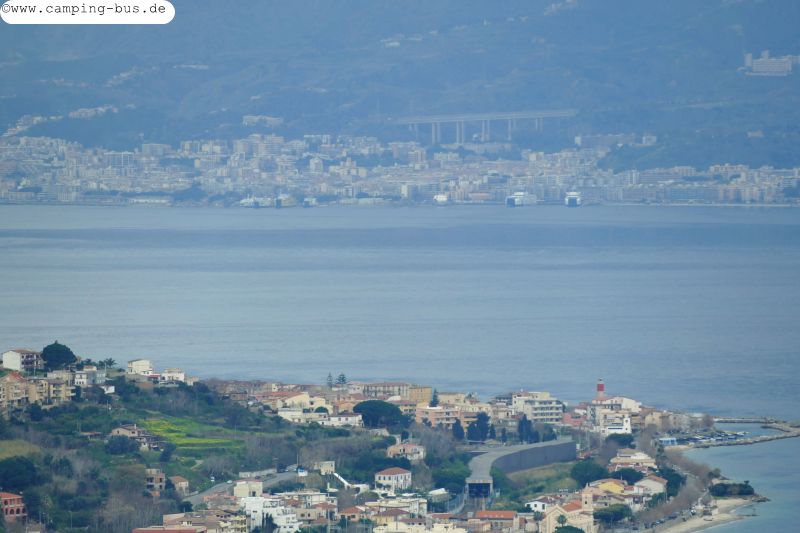 Von einem Schotterplatz oberhalb des Mastes in der Nähe von Scilla hat man einen tollen Blick auf die Straße von Messina. Eigentlich wollen wir hier über Nacht bleiben. Aber gegenüber des Platzes liegt ein Restaurant, das abends um 19 Uhr öffnet. Wahrscheinlich wird dieser Platz von Gästen genutzt und wir finden bis spätabends keine Ruhe. Deshalb fahren wir noch etwas weiter.