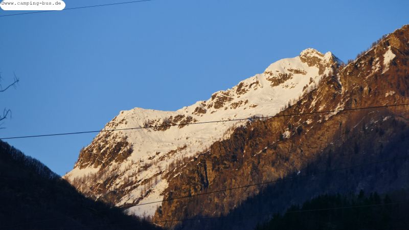 Wir bleiben nicht hier sondern einige Kilometer entfernt auf dem offiziellen Wohnmobil-Stellplatz von Premosello-Chiavenda. Hier haben wir schon vor zwei Jahren bei unserer Norditalien-Reise einige Tage mit Aussicht auf die Berge verbracht und so machen wir es auch diesmal.