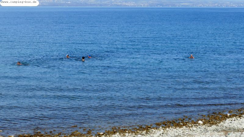 Freie Sicht haben wir auch auf die Badegruppe, die sich am Mittwochmorgen bei frischen 9 Grad Wassertemperatur in den See begibt.