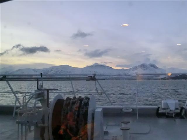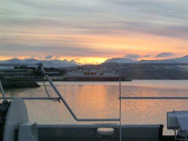 Reisebericht: Tromsö/ Nord-Norwegen im Winter: Nordlicht - Südlicht - Adventslicht und mehr28.11. bis 05.12.2012Im Winter nach Tromsö in Nordnorwegen, wenn die Sonne nicht mehr den Horizont überschreitet und es folglich den ganzen Tag dunkel ist - wie kann man denn auf solch eine ....... Idee kommen? Auf die Idee sind wir im Sommer 2011 gekommen, als wir bei unserer Skandinavientour mit dem Wohnmobil diese nördlichste Universitätsstadt der Welt mit ihren schönen Holzhäusern kennen- und lieben gelernt haben, siehe hier den Bericht von der Sommerreise, wenn die Sonne im Norden nicht untergeht. "Hier müsste man mal hin, wenn die Sonne nicht aufgeht und man das Nordlicht sehen kann", so war damals unsere Überlegung. Nun haben wir´s gemacht und berichten darüber mit vielen Fotos auf dieser Seite. Der Informationsteil mit Angaben zu An- und Abreise, Hotel, Nordlichtsafari und Fjordreise mit dem Hurtigbåt befindet sich am Ende der Seite. Wir übernachten in Tromsö im AMI-Hotel, das dank seiner Hanglage oberhalb des Kongsparken (Königspark) einen freien Blick über Stadt und Fjord bietet. Aus dem gemütlichen Speise- und Aufenthaltsraum ... ... sieht man den Park, das beleuchtete Stadtzentrum und auf der anderen Seite des Fjords auf dem Festland die beleuchtete Eismeerkathedrale. Der "Riese" im Vordergrund ist Statue von König Olaf V. Wirklich stundenlang genießen wir den Blick aus unserem Fenster auf der Südseite des Hotels. Die Morgendämmerung geht direkt über in die Abenddämmerung und das Ganze dauert ca. 5 Stunden! Gegen 8:30 Uhr erscheint der erste schwache Grauschimmer am Horizont. Je nach Bewölkung und Tageszeit wechselt die Intensität der Farben des "Südlichts". Gegen 11:30 Uhr erreicht die Sonne den höchsten Stand, schafft es aber vom 21.November bis 21. Januar nicht, den Horizont zu überschreiten. Danach wird es ganz langsam wieder dunkler bis gegen 14:30 Uhr "die Nacht beginnt". Ab Freitag, dem 30.11. wird unser Zimmer rund um die Uhr von draußen beleuchtet von dem großen Weihnachtsbaum des Gymnasiums auf der anderen Straßenseite. Es ist das 1925 eingeweihte älteste Gymnasiums Tromsös, dessen Bau von den reichen Kaufleuten der Stadt bezahlt wurde (Info von Karina Weinschenk, vielen Dank). Dies ist nicht das Rotlichtzentrum Tromsös, wie man beim Anblick der roten Herzchen denken könnte. Die Fußgängerzone und einige Nebenstraßen sind mit dieser einheitlichen Adventsbeleuchtung dekoriert. Gut 5 Minuten braucht man vom AMI-Hotel in die "Storgata" mit vielen Geschäften in den schönen alten norwegischen Holzhäusern. Jetzt am "hellen" Mittag kann man nur bei genauem Hinschauen die Lichterketten in den hohen Bäumen erkennen. Gegen 14 Uhr geht der Tag zu Ende und die Nacht beginnt, aber in dieser Zeit mit der üppigen Adventsbeleuchtung können wir das gut ertragen. Nicht nur zur Advents- und Weihnachtszeit leuchtet das Blå (blaue) Rock Café im Zentrum von Tromsö. Auch am alten Hafen gibt es schöne alte Holzhäuser mit Hotels und Restaurants. An der Storgata liegt die evangelisch-lutherische Domkirke, eine der größten Holzkirchen Norwegens. Wer als "Kathole" noch nie in einer evangelischen Kirche war wird feststellen, dass er den in katholischen Kirchen üblichen "Prunk" hier vergeblich sucht. Während unseres einwöchigen Aufenthalts schwankt die Temperatur zwischen Minus 2 und Minus 8 Grad. Für das vom Golfstrom beeinflusste Klima Tromsös ist das für diese Jahreszeit relativ kalt, da wir eine schwache südöstliche Luftströmung vom kalten Festland haben. Trotzdem sehen wir immer wieder Menschen, die auf den Außenterrassen der Cafés ihren Kaffee trinken oder einen Imbiss zu sich nehmen. Alles ne Frage der Gewöhnung!? Wir haben uns daran nicht so schnell gewöhnt und bevorzugen ein warmes Plätzchen. Wir gehen am Wasser entlang zum Anleger der Hurtigbåt-Fähren. Dort befindet sich ... ... das viergeschossige Einkaufszentrum Nerstranda ... ... und darin im 2. Obergeschoss "Le Café" mit dieser prächtigen Aussicht auf die Katamarane, die Brücke vom Festland nach Tromsö und die Eismeerkathedrale. Übrigens: Ganz rechts im Bild sieht man den 420 m hohen Aussichtsberg Storsteinen gegenüber von Tromsö, von dem man eine phantastische Aussicht auf Stadt und Umgebung hat. Leider haben wir uns selbst nicht davon überzeugt, da die Fjellheisen-Bergbahn wegen Reparaturarbeiten außer Betrieb war. Da man nach Bestellung einer Tasse Kaffee diese gratis nachfüllen darf fällt es nicht schwer, ... ... längere Zeit diesen schönen Ausblick zu genießen. Wenn man bis zum Einbruch der Finsternis um 14:30 Uhr wartet ... ... kann man aus dem Café das Einlaufen des Hurtigrouten-Schiffes auf dem Weg nach Norden mit Zielhafen Kirkenes beobachten. Natürlich wollen wir auch etwas für die Bildung tun und besuchen deshalb das Polarmuseum am nördlichen Rand der Innenstadt. Betritt man diesen Nachbau einer Polarjäger-Hütte ertönen aus einem Lautsprecher die Laute der nordischen Wildnis. Eine Vielzahl solcher detailgetreuen Szenenaufbauten vermittelt einen realistischen Eindruck vom Leben und der Arbeit der Jäger im hohen Norden. Ganz schön groß, so ein Walross. Ein wesentlicher Teil des Musuems ist den Polarexpeditionen norwegischer Polarforscher gewidmet, hier ein Foto der festgefrorenen "Fram". Wer sich für diese Themen interessiert sollte ca. 2 Stunden für den Besuch des Polarmusuems in Tromsö einplanen. Aber das Hauptziel aller Winter-Touristen in Tromsö ist natürlich die Nordlichtbeobachtung. Bei wolkenlosem Himmel gehen wir zur Tourist-Info, von wo wir mal wieder die Eismeerkathedrale und den Mond über der großen Brücke vom Festland nach Tromsö sehen. Hier beginnt um 19 Uhr im Kleinbus die Nordlichtsafari, für die wir uns angemeldet haben. Alle folgenden Nordlichtfotos verdanken wir der deutschen Veranstalterin der Nordlichtsafari Karina Weinschenk, siehe Homepage von Scan Adventure. Weitere Infos zur "Thüringer Würzburgerin" im hohen 